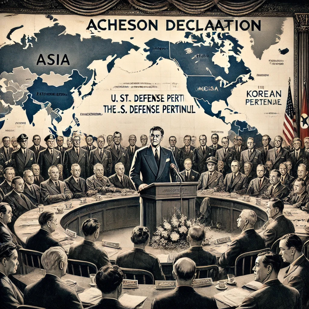 애치슨의 연설은 이러한 맥락에서 미국의 군사적 입장을 명확히 하기 위한 것이었습니다. 애치슨은 오키나와, 일본, 필리핀 등 미국의 안보에 필수적인 것으로 간주된 핵심 지역을 방어해야 할 필요성을 강조했습니다. 그러나 이 방어선에서 한국은 눈에 띄게 제외되었습니다. 38선을 경계로 소련의 지원을 받는 북한과 미국의 지원을 받는 남한으로 분단된 한반도는 미국의 직접적인 군사 보호 영역 밖에 놓였습니다. 이는 공산주의 진영을 포함한 전 세계에 미국의 군사 전략에서 한국이 우선순위가 아니라고 분명히 알려주는 실수였으며, 곧 중대한 결과를 초래하게 됩니다.
